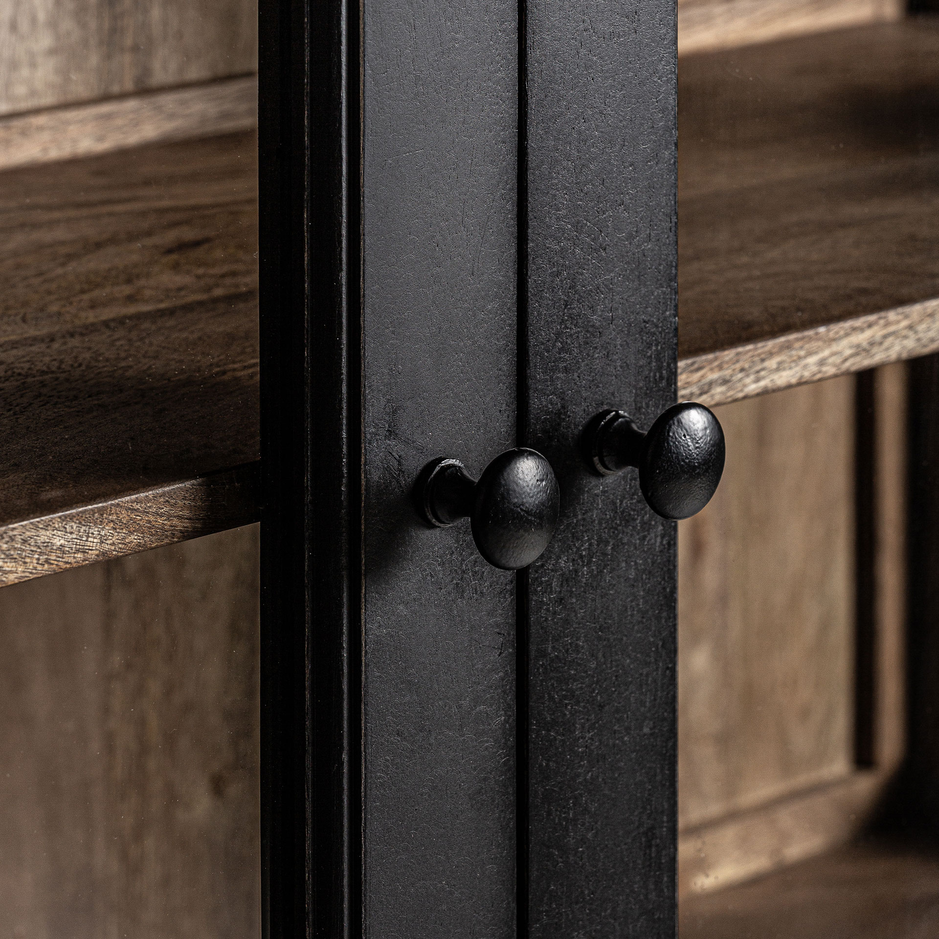 Витрина Bavay, черный/натуральный цвет, колониальный стиль. Изготовлен из дерева манго в сочетании со стеклом.