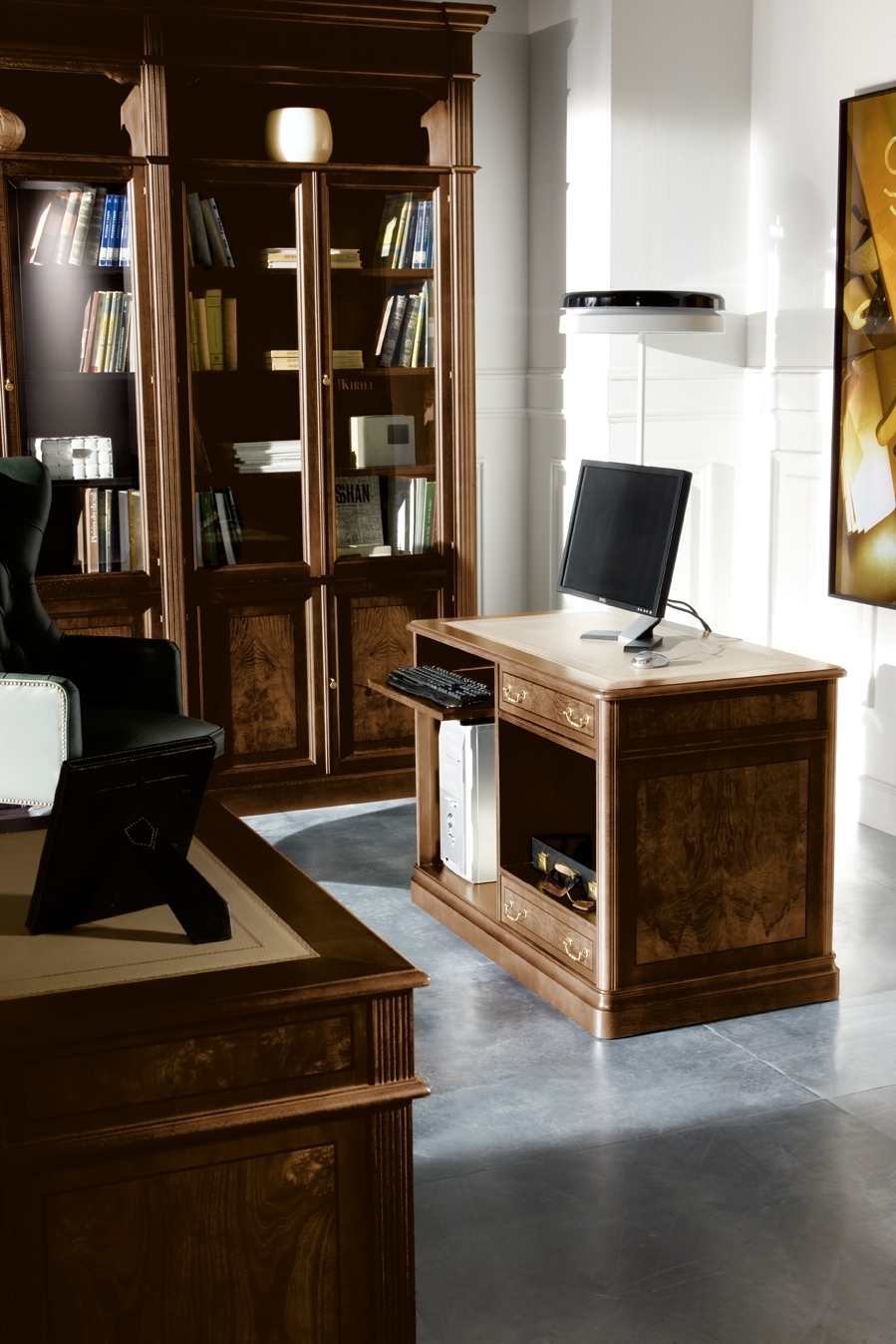 Классический офис — это тот, который пересекает барьер времени и где мебель обретает собственную жизнь. Классический офис выходит за рамки новизны или новаторского характера, это офис, где вкус, чувства, ощущения, чувства и гармония замечаются и приобретают ценность. Традиции маркетри, столярных и шорных изделий, слова, напоминающие о древних ремесленниках, в сочетании с современными технологиями и знаниями людей, которые являются экспертами в работе с великими традициями и престижем, вместе с выбором изысканного сырья позволяют получить идеальные элементы для создания коллекции ARTMOBLE. Ценность деталей, текстур и материалов. Художественный дух ремесленника, который отражается в творениях, в которых традиция краснодеревщика Ofifran проявляет свое ноу-хау, предлагая мебель со всеми функциональными требованиями, которые востребованы в настоящее время, и в то же время мебель означает статус, который ценит роскошь, изысканность. , изысканность, элегантность и изысканность, подчеркивающие пространство.