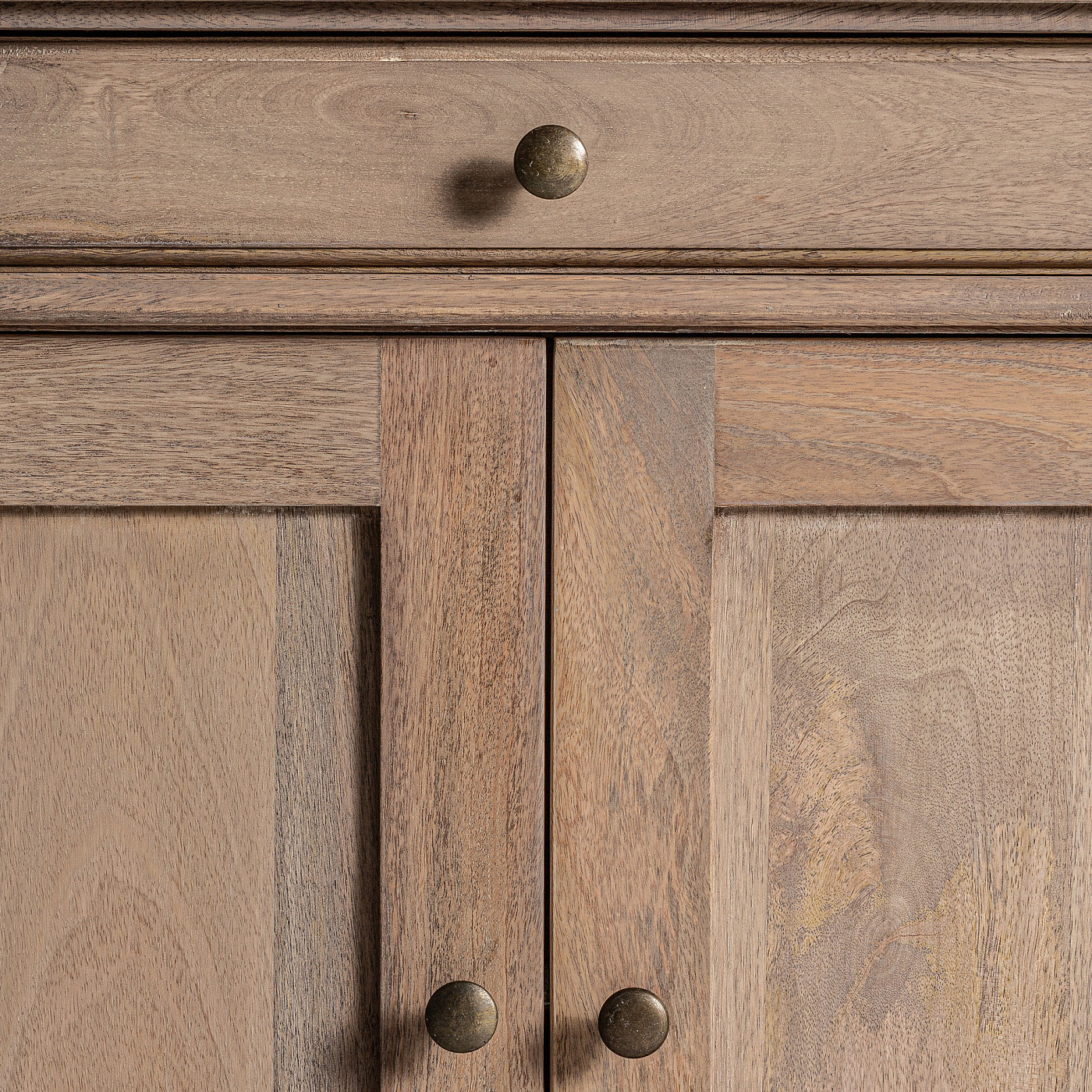 Витрина MANDERN, состаренного натурального цвета, в колониальном стиле. Изготовлен из древесины манго в сочетании с железом и древесиной DM.