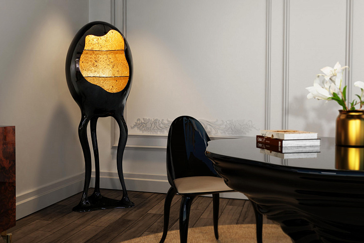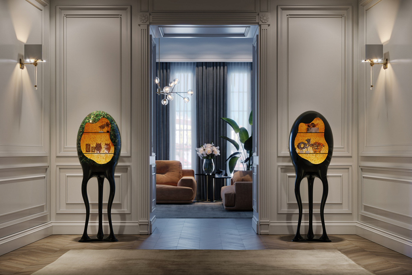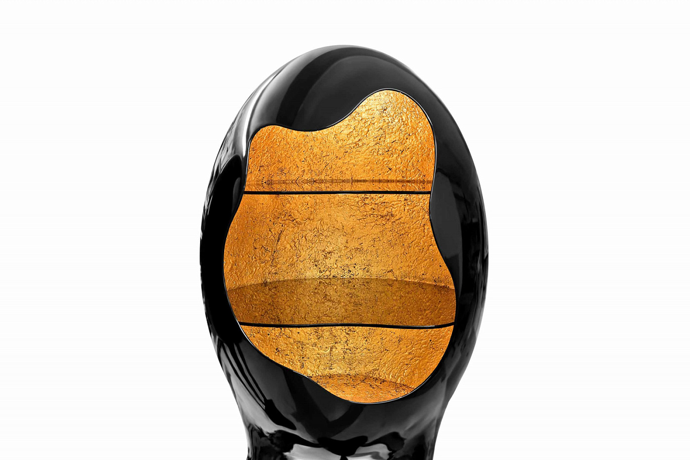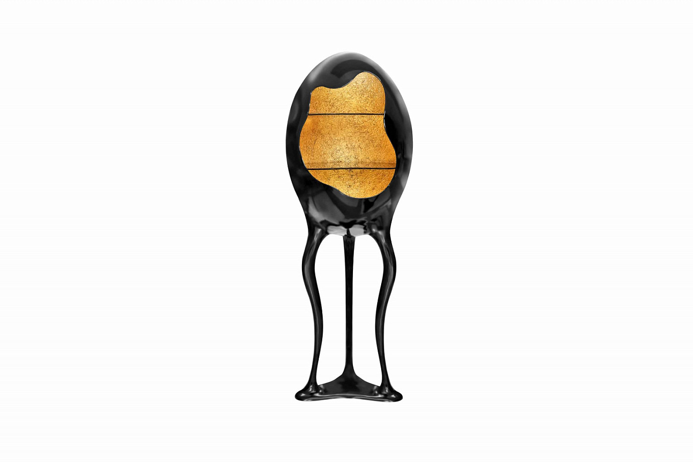 Очаровательная вещь с элегантным скульптурным дизайном. Ее привлекательная яйцевидная структура, поддерживаемая тремя ножками, делает ее потрясающим центром внимания в любом пространстве. Отделанная высококачественным глянцевым черным лаком, эта витрина излучает изысканность и стиль. Внутренняя часть витрины Orion столь же впечатляет, отличаясь роскошной текстурированной отделкой из листового золота. Полки и освещение внутри обеспечивают идеальное место для демонстрации ваших самых ценных вещей. Независимо от того, используется ли она в гостиной, галерее или торговом помещении, витрина Orion добавит нотку роскоши и гламура в любую обстановку.
