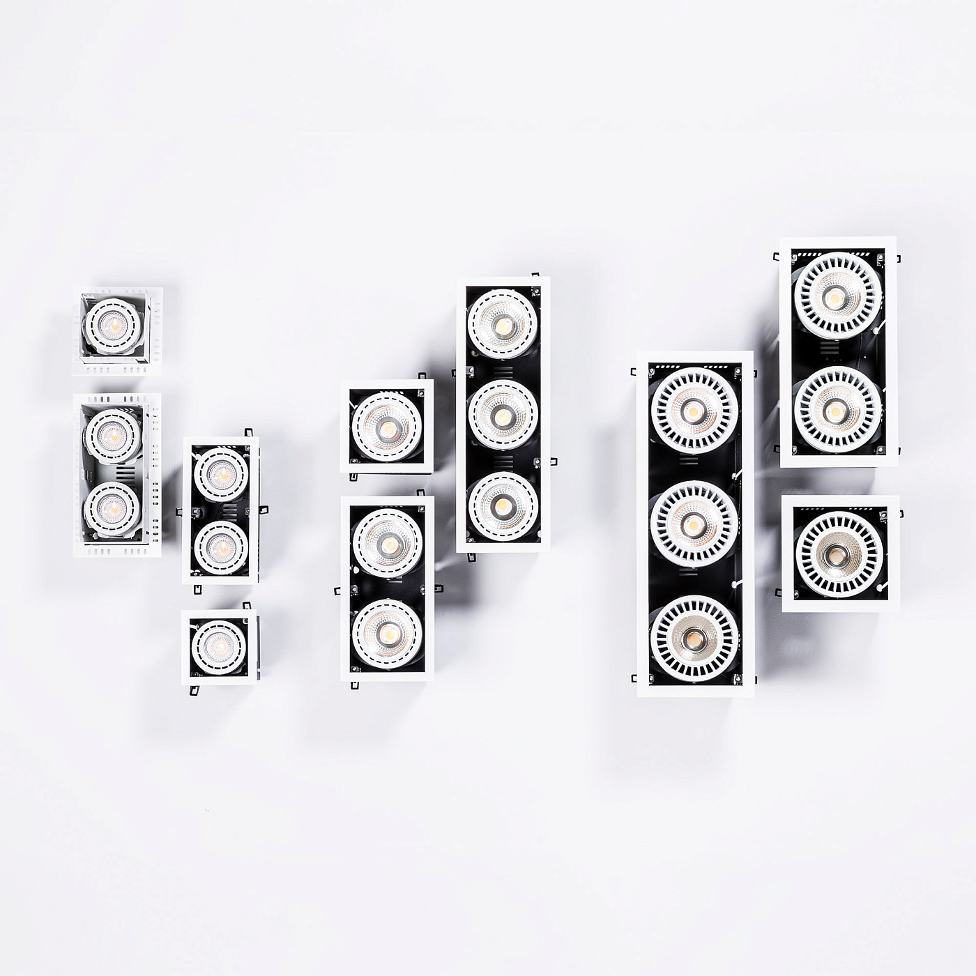 COLIN-3 — белый карданный встраиваемый светильник с углом освещения 20° и мощностью 72-108 Вт. Идеально подходит для освещения моды.