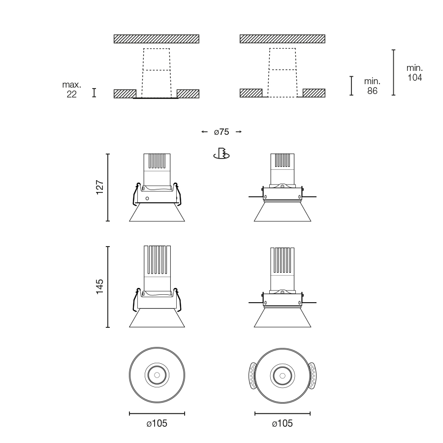 Встраиваемый светильник ELIOS BELL IP20 10W черный 36є 3000K