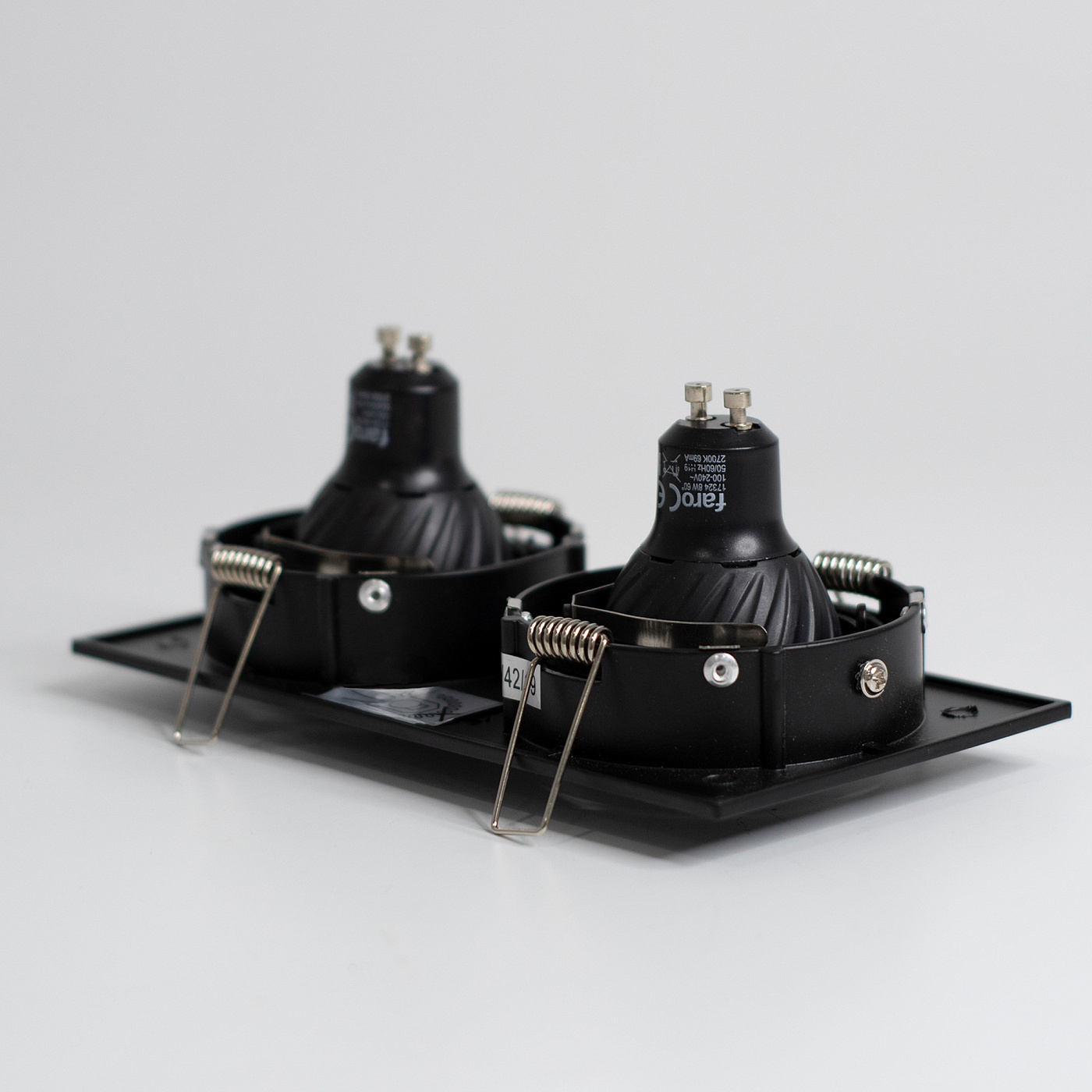 Потолочная встраиваемая лампа из алюминия, отделка черного цвета. У вас есть несколько вариантов в качестве источника освещения: 2 x MR16 или 2 x GU10, в которые не включены ни трансформатор, ни розетка. Эта регулируемая встраиваемая лампа идеально подходит для освещения разных комнат дома, например, гостиной.