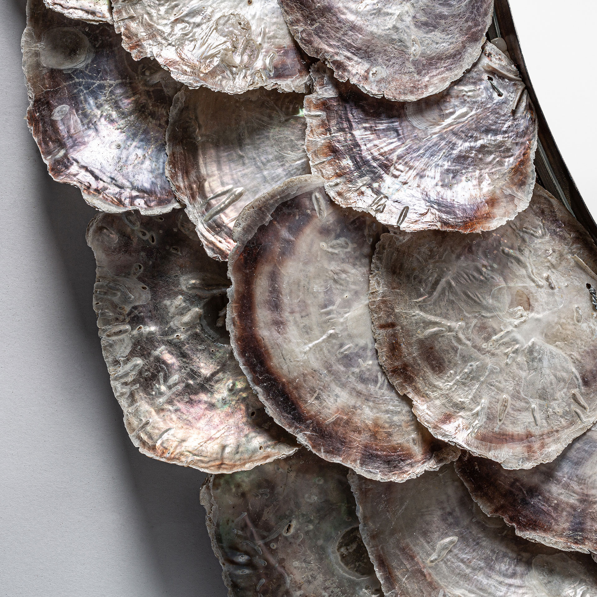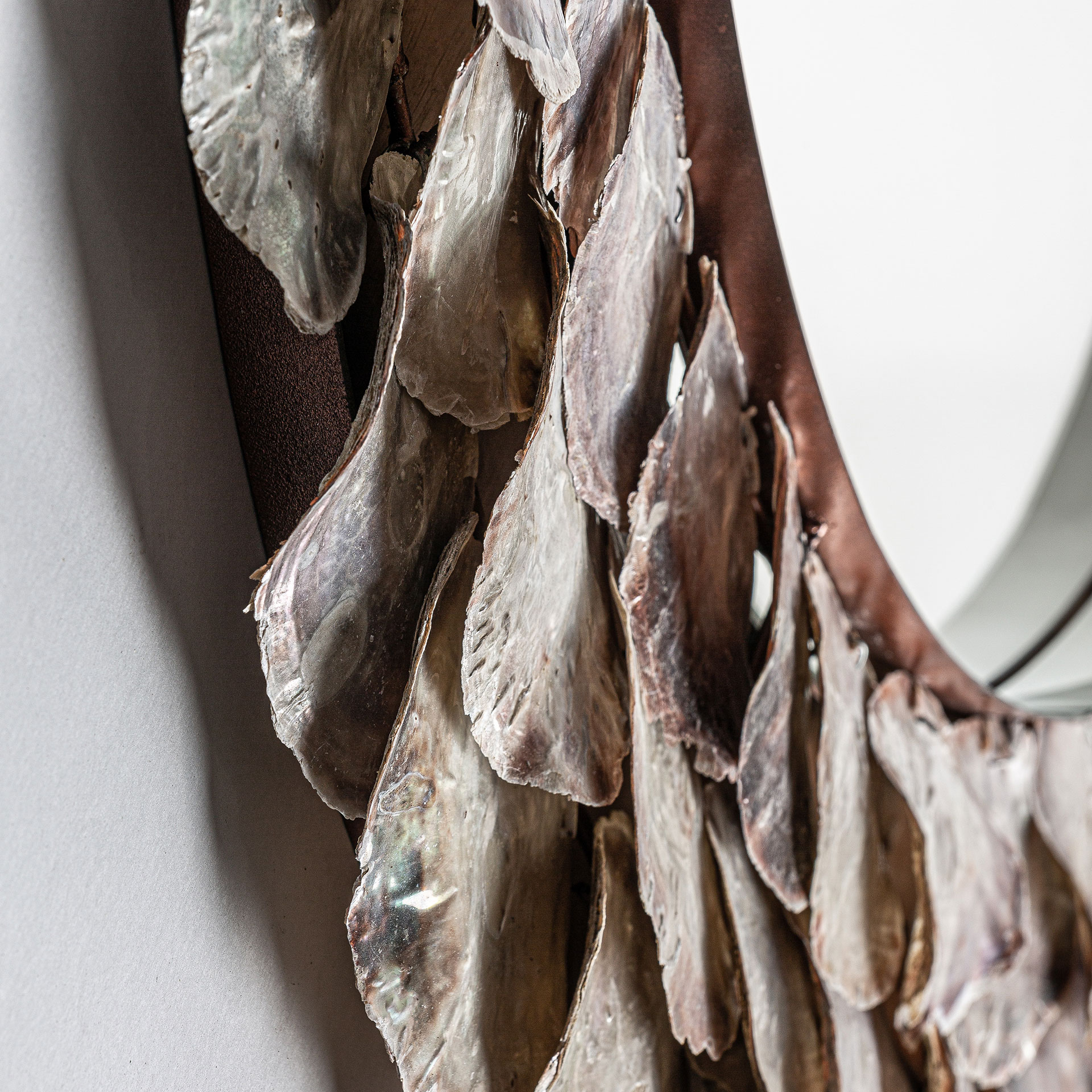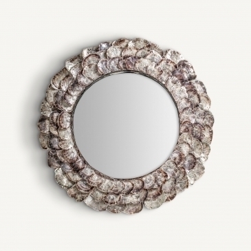 Круглое зеркало Inga, цвет слоновой кости, скандинавский стиль. Изготовлен из стали в сочетании с ракушкой и зеркалом.