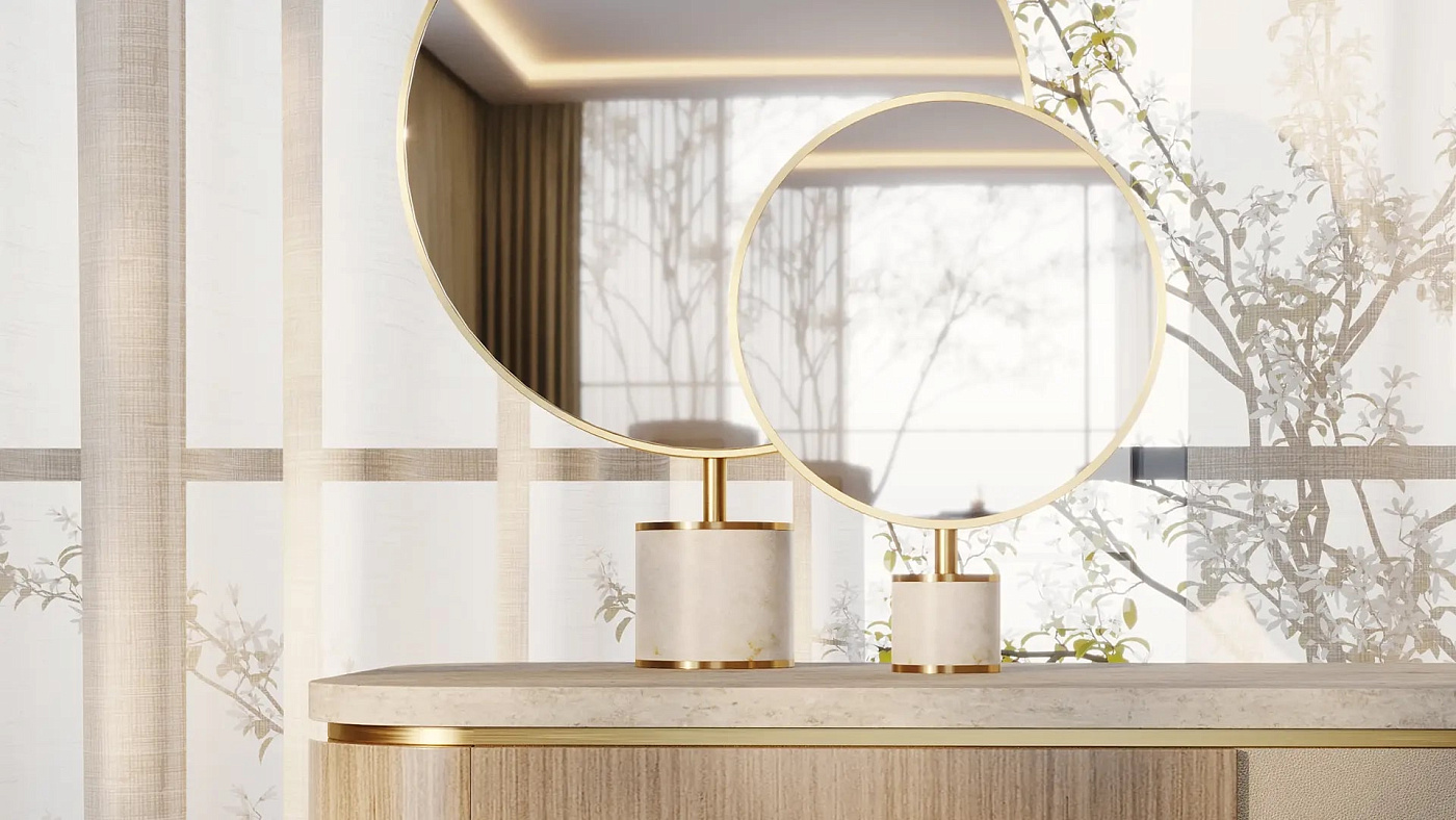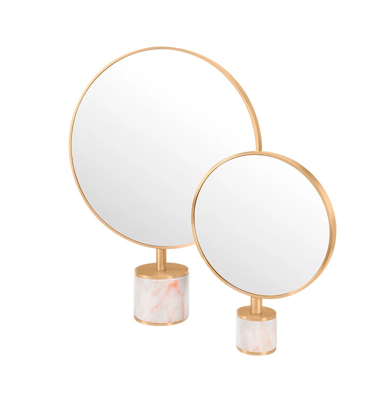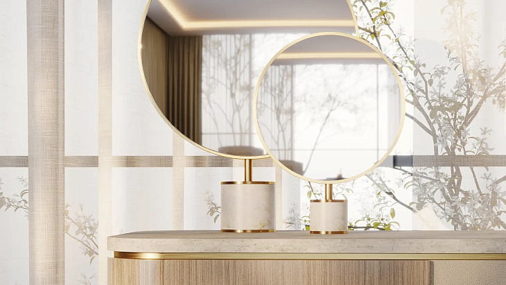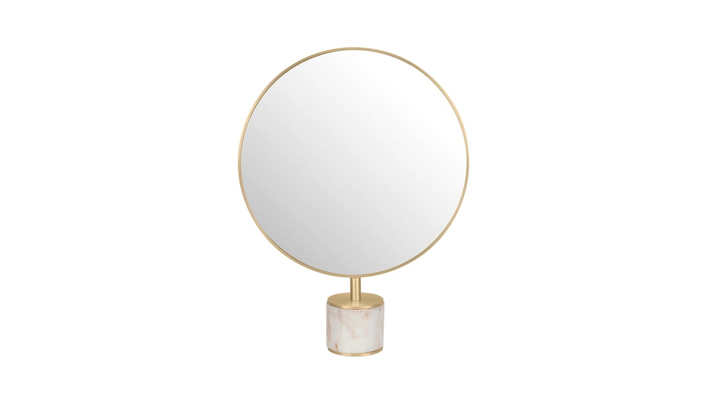 Круглое зеркало AGADIR, на которое приятно смотреть, доступно в двух разных, но одинаково практичных размерах. Благодаря непринужденному силуэту дизайн подчеркивает зеркальность, демонстрируя великолепие двух неподвластных времени материалов: кремового камня и матовой латуни.